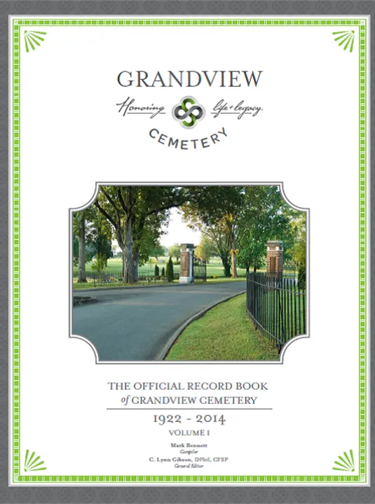 This beautiful award winning book, written by Dr. Lynn Gibson and Mark Bennett, is the official record book for Grandview Cemetery. The book provides information about the cemetery from 1922-2014. The information provided includes an alphabetized list of the cemetery records through the first 92 years. Also, the book provides a brief history of the cemetery, including historical points of interest and cemetery development since its beginning. Call us or stop by our office if you would like to order your own copy